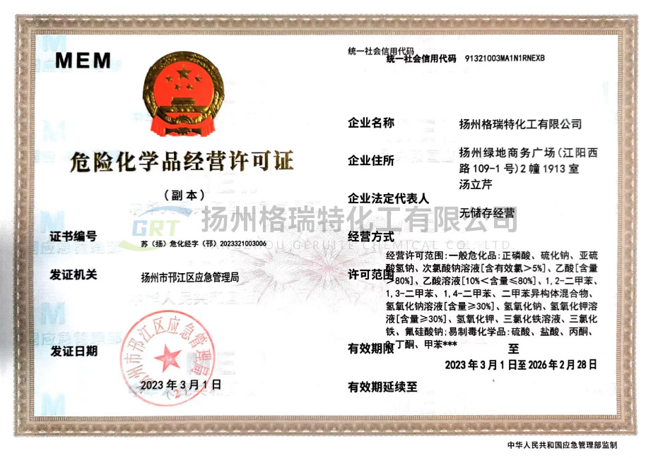 揚州格瑞特化工有限公司生產工廠坐落于江蘇省海安縣胡集工業園區和海安精細化工工業園??偣境闪⒂?999年,是集科、工、貿為一體的現代化生產型企業。專業致力于水處理劑、紡織印染助劑、化纖油劑等產品的科研、開發、生產和銷售??偣菊嫉孛娣e40000m,建有現代化標準廠房,擁有先進的生產設備。年產各類水處理劑系列產品12000噸,紡織印染助劑5000噸,產品12個系列40多個品種??偣咀⒅丶夹g投入,設立產品研發中心和環保運營中心,聘請了多位專家為公司技術顧問,并和多個重點院校建立了長期技術合作開發關系,是南通大學、江南大學、南京工業大學產學研基地。